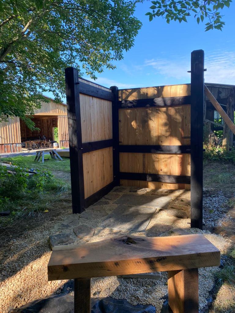 Agricultural Pavilion at Triangle Land Conservancy, Durham, NC February 2022 with Earth-Bound BuildingFarmers Market Pavilion- Independence, VA October 2021. Volunteer & Member of The Timber Framers Guild, 40’x100′ White Oak FrameAmber sharpening chisels during workshop, Sandpoint, ID June 2023Amber sets curves hand plane while rounding posts- Sandpoint, ID June 2023Ash and Oak Bent for Japanese Style Pavilion Berea, KY. 2021Amber instructing participants on the Japanese wood preservation technique Shou Sugi Ban at Year of Mud Workshop in Berea, KY 2022.Waddle and Daub Roof on Outdoor Bathroom, PAWaddle and Daub in progress 2021.Plaster Vaneer. Grantham, NH. April 2023.
